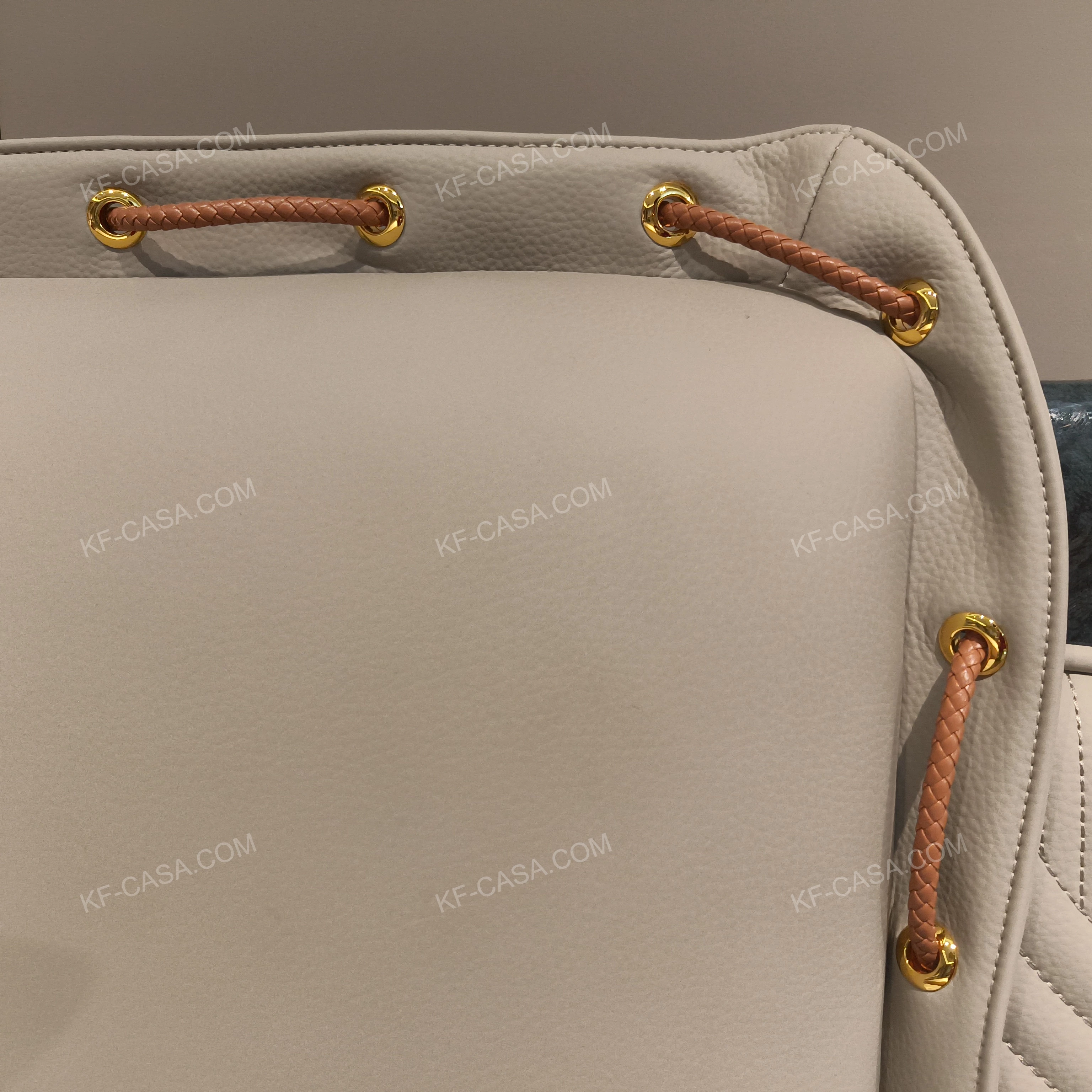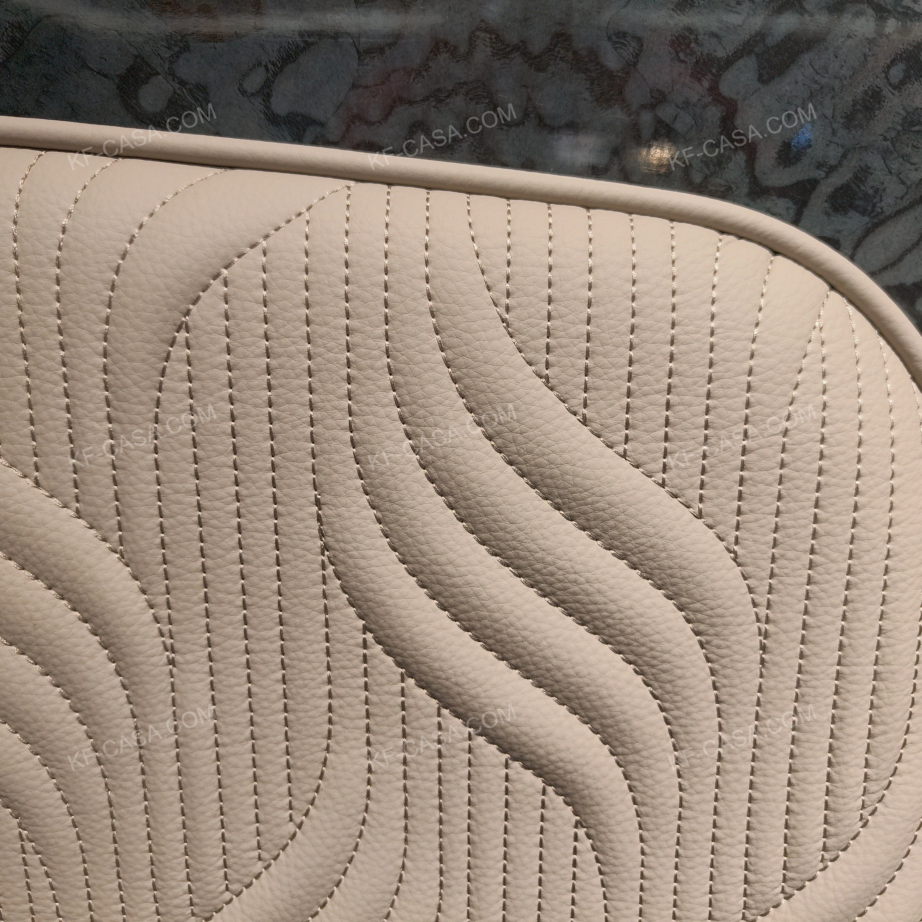 - Premium light beige leather with delicate wave quilting delivers soft tactile texture and refined elegance