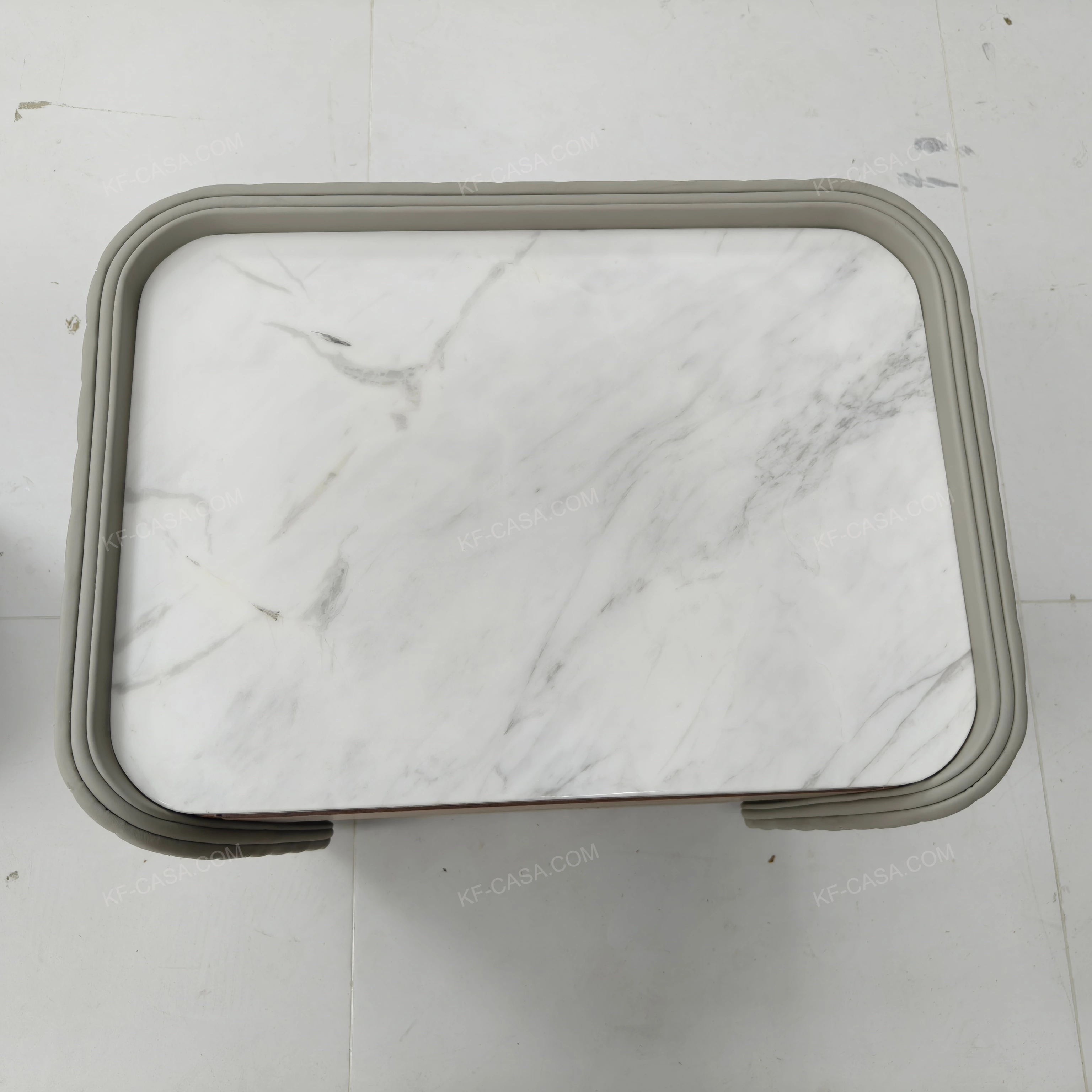 - Bianco Carrara Natural Marble + Solid Wood Frame + Natural Wood Veneer+Microfiber Leather