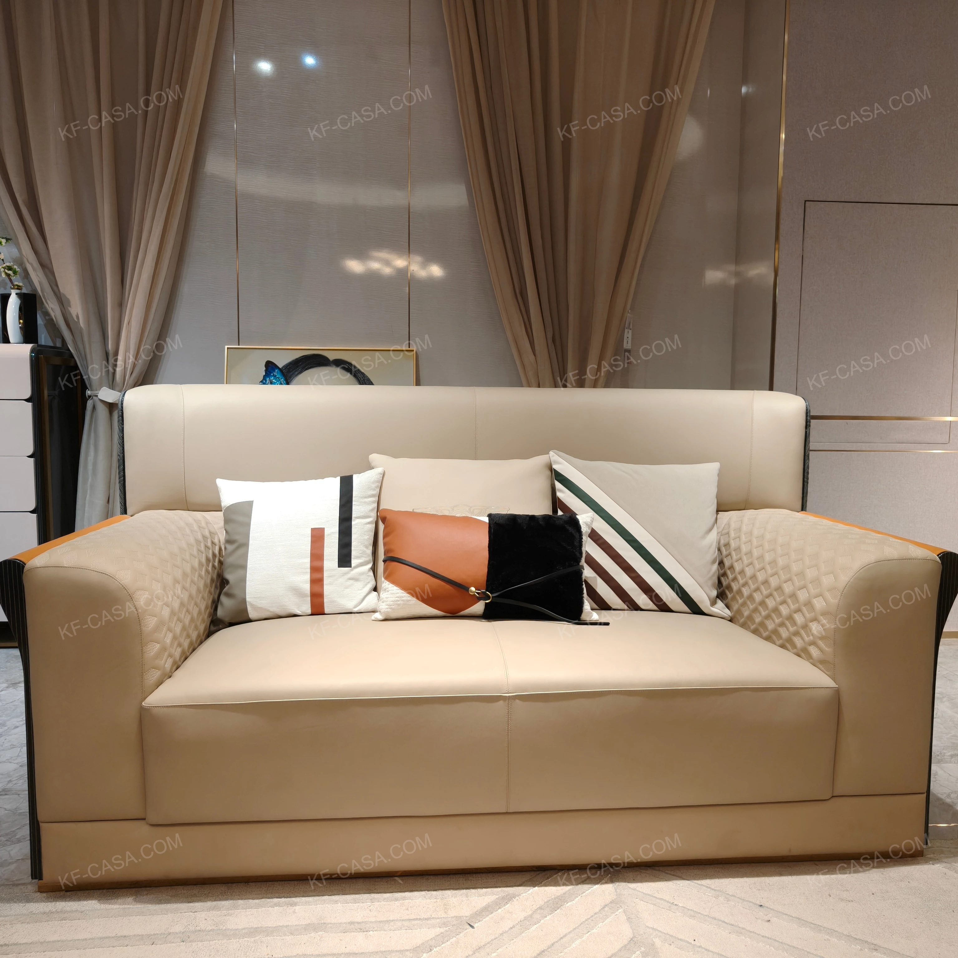 We are Foshan Love House Island Furniture Co., Ltd., and our brand is KF CASA. We have our own factory, specializing in Italian-style light luxury and minimalist whole-house custom furniture. We provide clients with a full range of services, from 3D design and furniture selection and matching to production, shipping, and customs clearance. Our mission is to serve every client wholeheartedly and help each client achieve their dream home.
