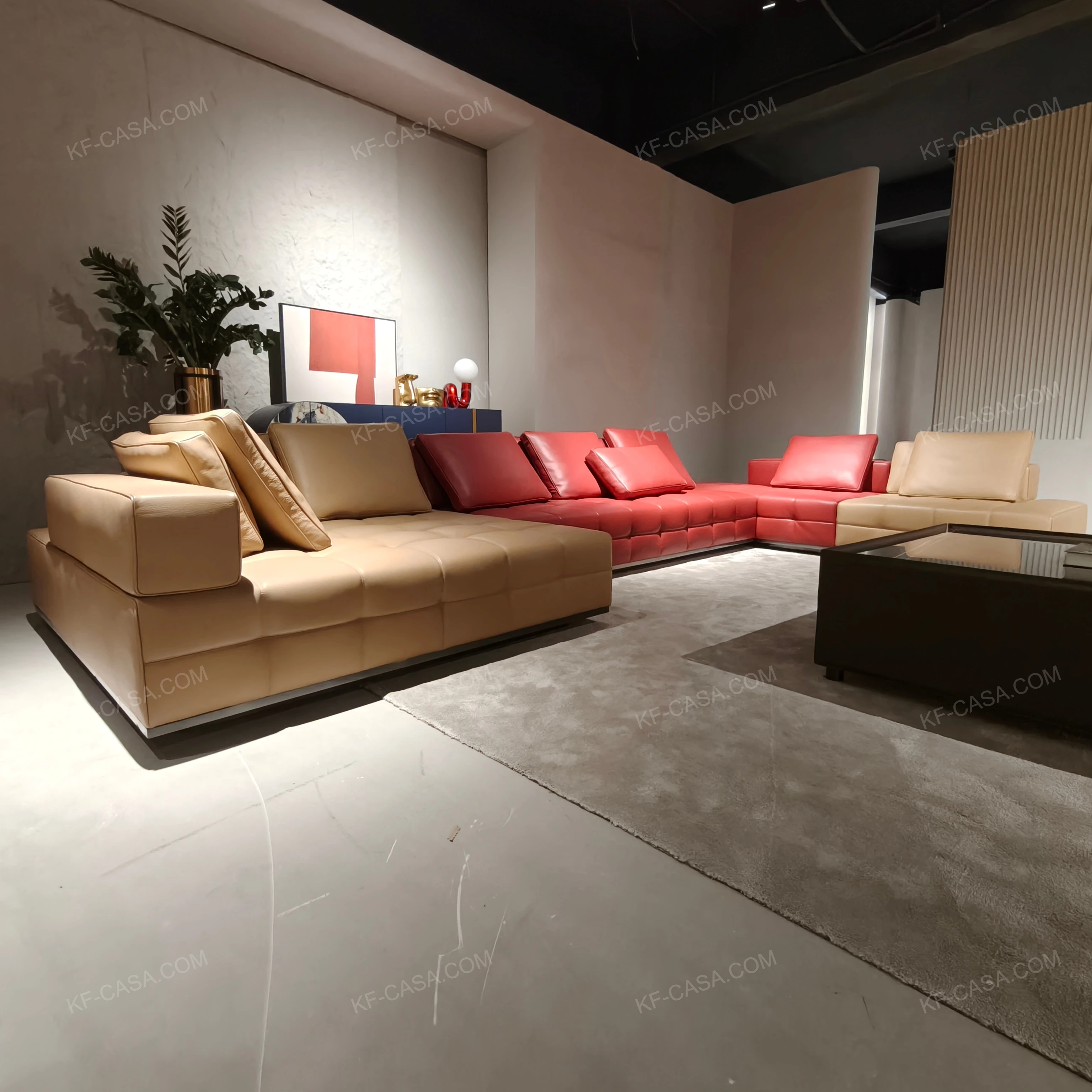 This modern modular sectional sofa is meticulously crafted from premium top-grain leather, defined by exquisite grid tufted craftsmanship that delivers both refined visual texture and durable structural performance. Its flexible modular design adapts perfectly to diverse living space layouts, from large villas to urban penthouses, while the suspended metal base adds sleek modern style and ensures stable support. Plump high-resilience cushions and wide ergonomic armrests deliver exceptional long-term seating comfort, making it an ideal centerpiece for contemporary luxury home interiors.